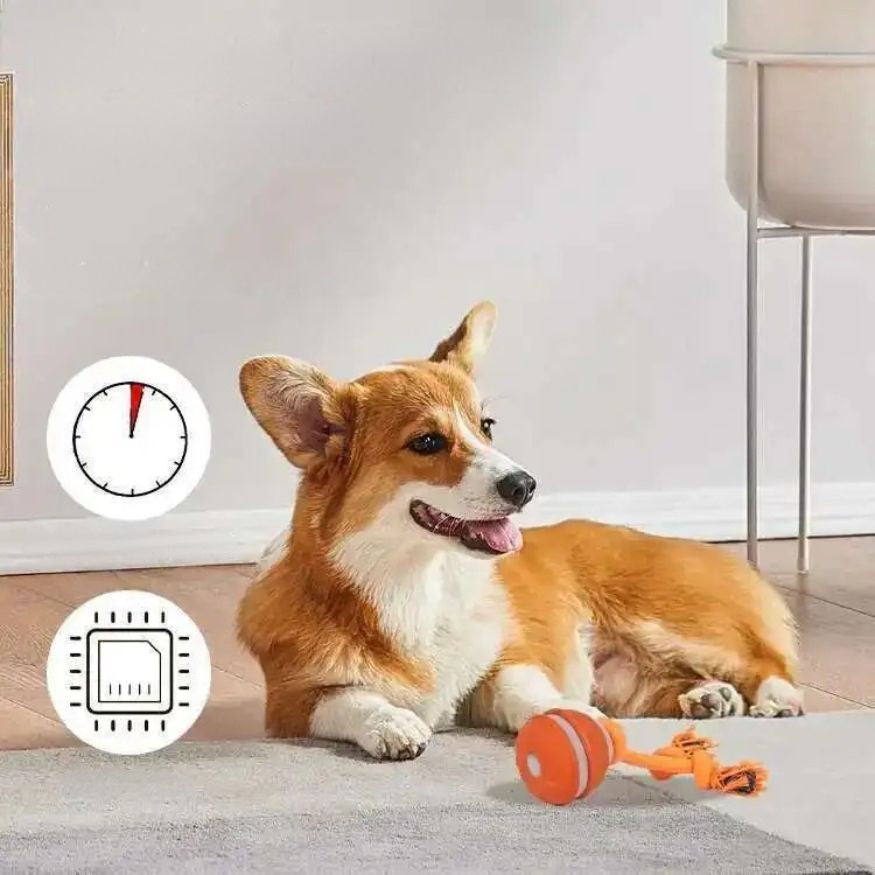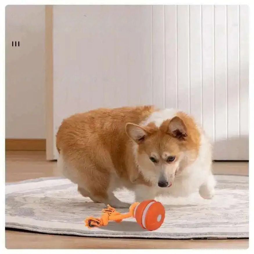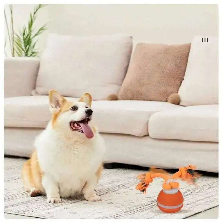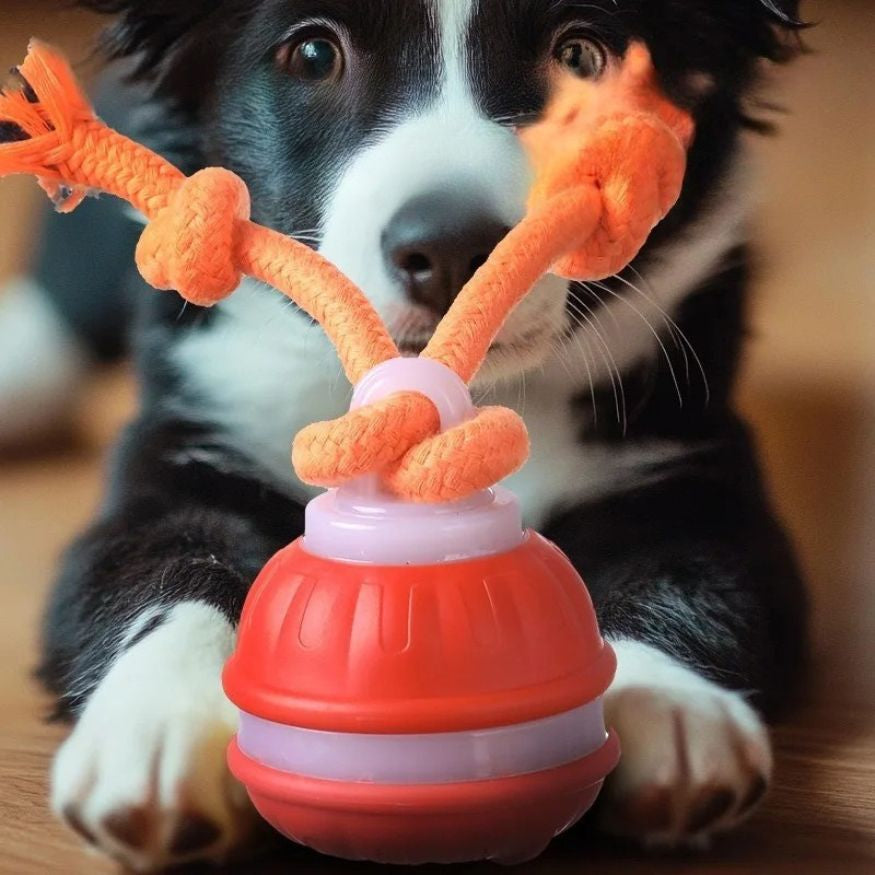 Beveger seg av seg selv når hunden dytter borti den. Den kombinerer knutet tau med en motorisert ball som ruller i ulike mønstre. Dette gir hunden både mental stimulering og bevegelse innendørs på en trygg måte.